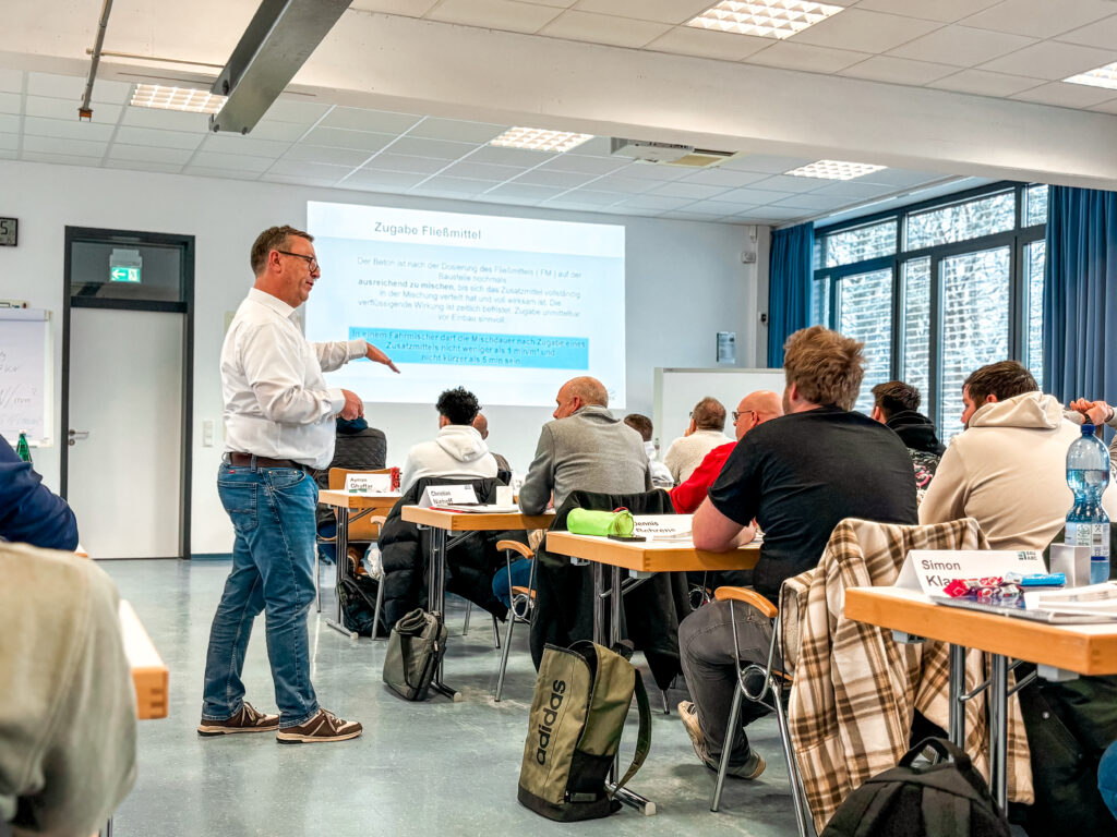 Der Frischbetonlehrgang ist als kompakt und intensiv gestalteter Vier-Tage-Lehrgang konzipiert und endet am fünften Tag mit einer abschließenden Prüfung. Im Mittelpunkt standen dabei die Vermittlung und Vertiefung grundlegender Kenntnisse über Rohstoffe und Beton, die eine wichtige Basis für den täglichen Umgang mit Transportbeton in Praxis, Disposition und Vertrieb bilden. Der Lehrgang findet einmal jährlich statt und ist branchenweit als etabliertes Weiterbildungsformat anerkannt.